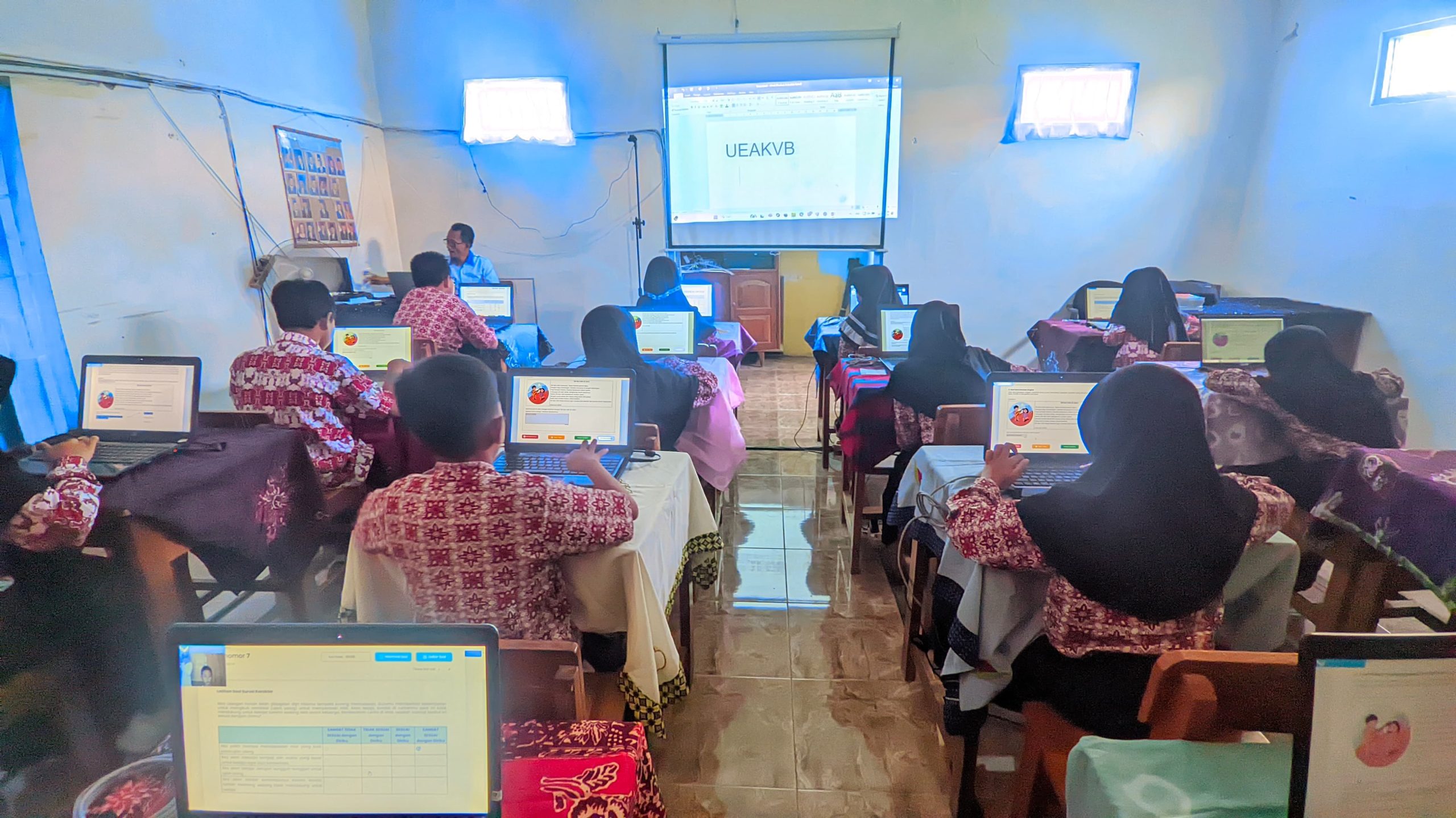 Para siswa menunjukkan antusiasme yang luar biasa selama gladi bersih berlangsung. Mereka tampak bersemangat karena pengalaman menggunakan laptop di lingkungan yang nyaman seperti laboratorium ini sangat baru bagi mereka. “Kami sangat senang dan penasaran mencoba belajar menggunakan laptop,” ujar salah satu siswa. Suasana ruangan yang nyaman dan mendukung proses pembelajaran digital menambah motivasi siswa dalam mengikuti kegiatan ini.